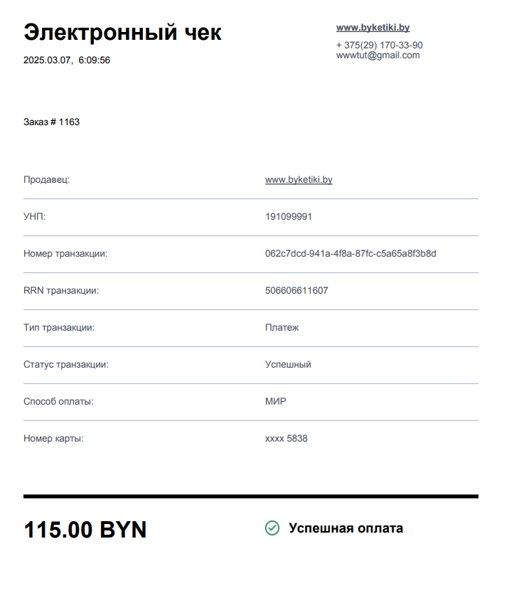 После оплаты вы получите чек на email, который вы указали при оформлении заказа.